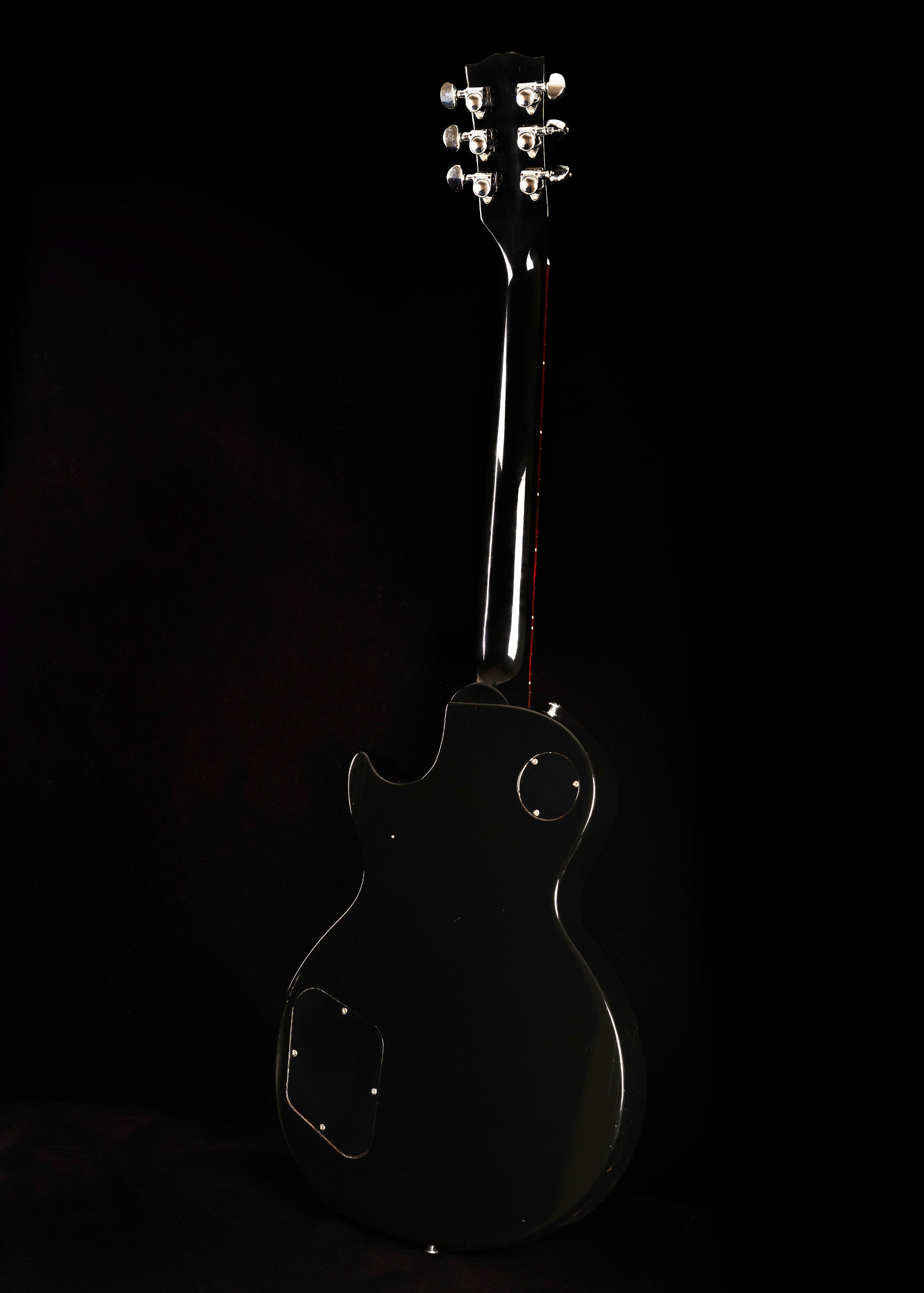 The hardware is chrome plated: Grover Rotomatic tuners, pickup covers, tune-o-matic bridge, tailpiece, a chrome pickguard bracket and jack plate. The humbuckers are the 490R and 498T combination offered throughout this era of Gibson Production. There are four black speed knobs and a black pickguard. This is from the pre-chambered era of Les Paul production, weighing in at 11 pounds.