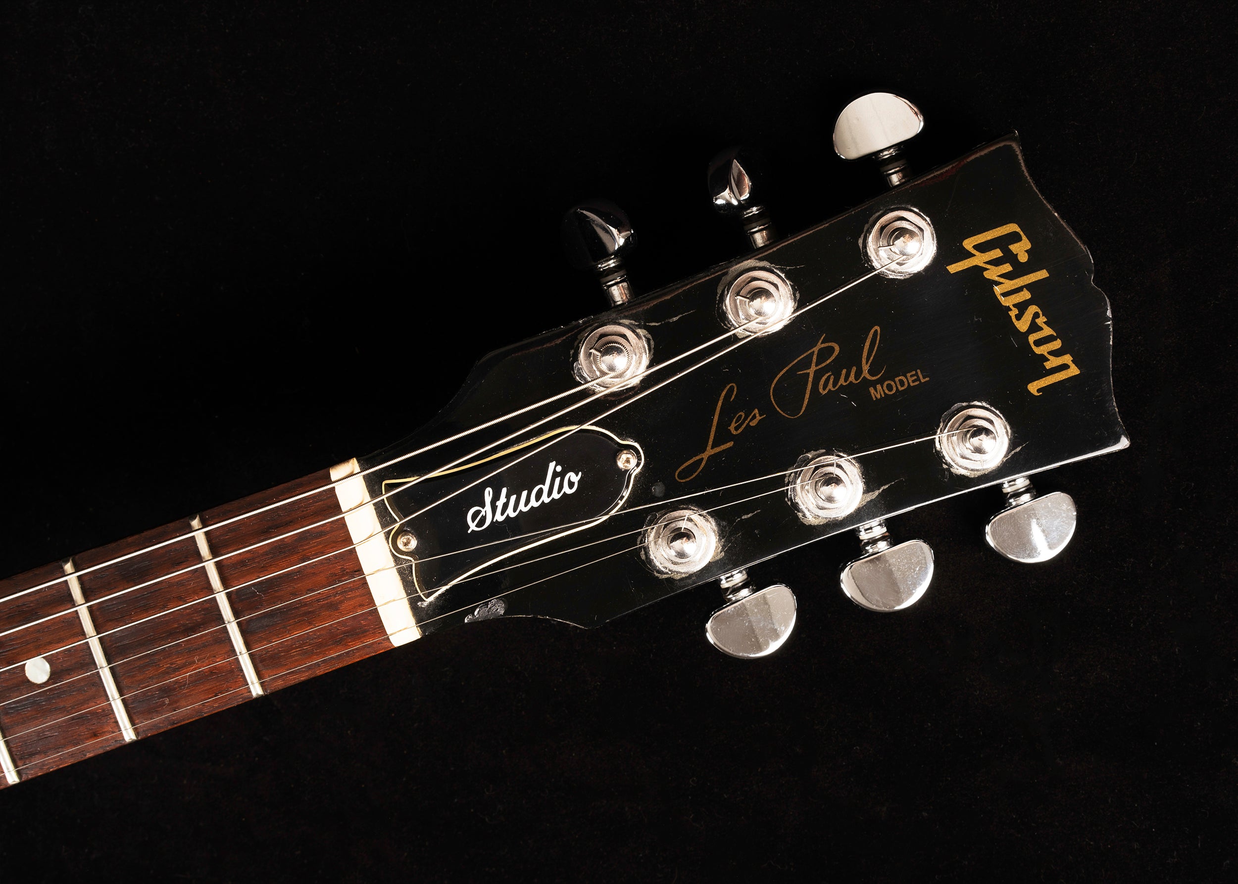 This is a 1999 Les Paul Studio solid body guitar. At the time of manufacture, the Les Paul Studio was offered with a number of variations to the basic Studio specifications. This one features an unbound body and neck with a high gloss nitrocellulose lacquer finish throughout. The serial number is stamped on the back of the headstock indicating a manufacture date at the start of 1999. The fingerboard is rosewood with pearl dot inlays and twenty two frets, the nut is 1 11/16” and the neck is a comfortable and fast “C” shape.